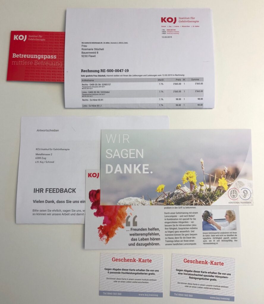 (Klein-) Artikel die über die Kasse verkauft werden, werden vor Ort im jeweiligen Institut bar oder ggf. mit EC beglichen und quittiert. Andernfalls wird vom Empfangsmitarbeiter ein Angebot erstellt, ausgedruckt und unterschrieben und weiter (analog wie oben) verarbeitet. Alle Rechnungen selbst werden von den zuständigen MA täglich ausgedruckt. Dabei werden die AN des Vortages in AX unter „Auswertungen“ (ggf. als Stapelverarbeitung) ausgedruckt. Standardisiert wird dafür der „orangene Einzahlungsschein“ verwendet. Die Rechnungen werden nach dem Ausdrucken, unterschrieben und durch den erzeugenden Mitarbeiter gescannt und bei Abschluss anschliessend mit der ganzen Akte gescannt.