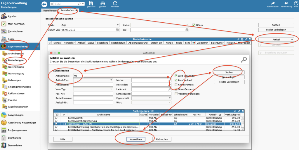 Wichtig: Bei Hörgeräten etc. müssen Seriennummern und Kommissionsdatum geprüft und angegeben werden. Sollten bei Hörgeräte-Lieferungen Rechnungen beilegen, sind diese nach Zug in die Zentrale zu schicken.